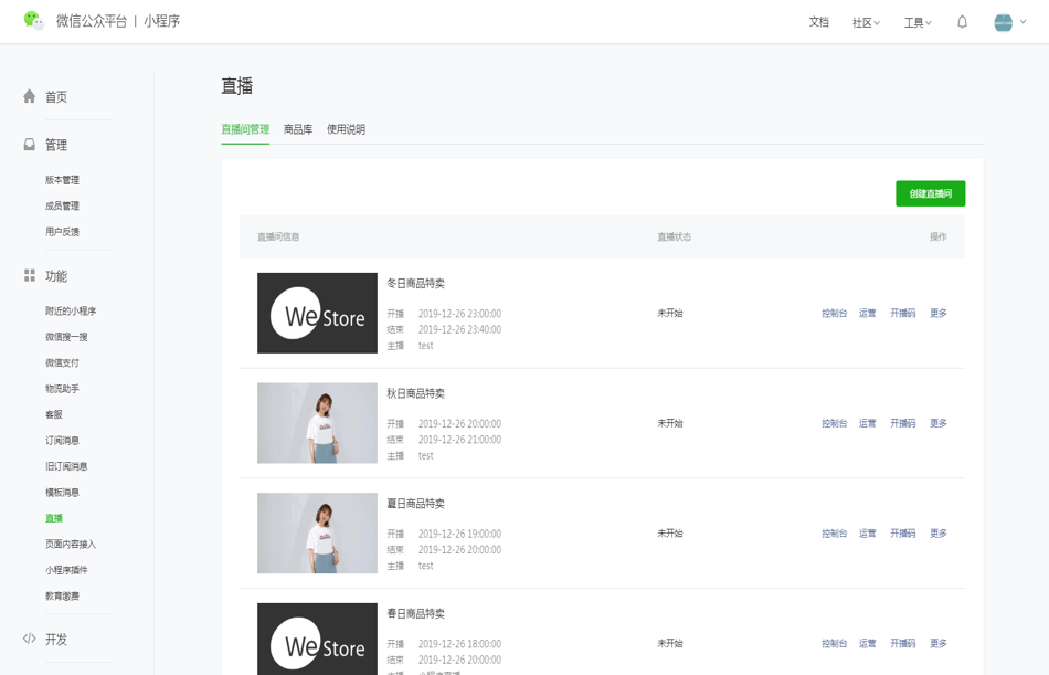 小程序直播的能力简介: