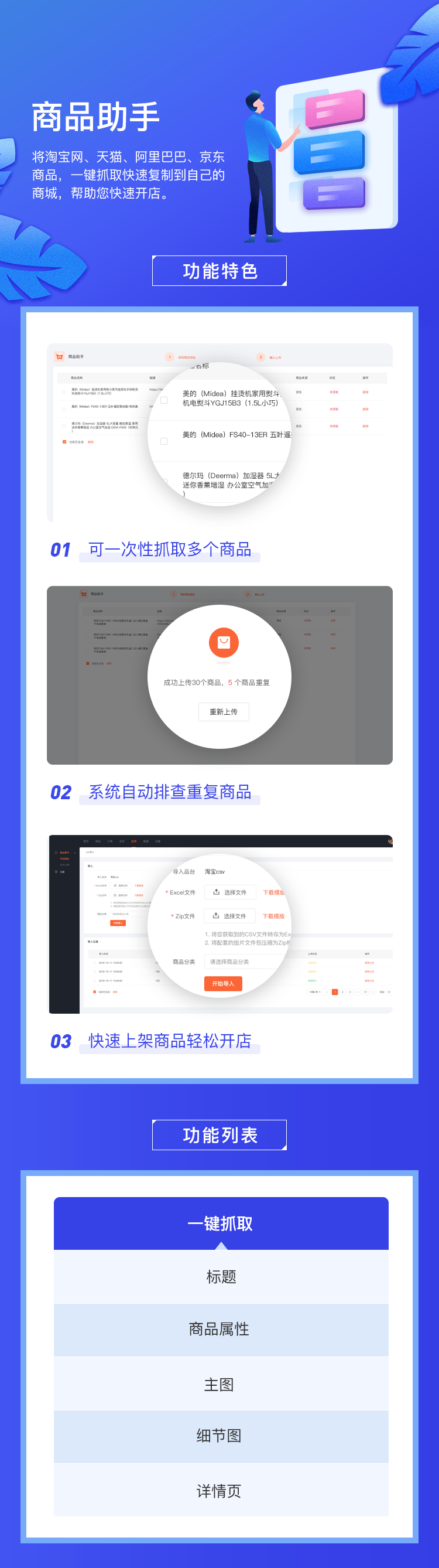 一键批量抓取天猫、淘宝、京东商品规格、图文详情