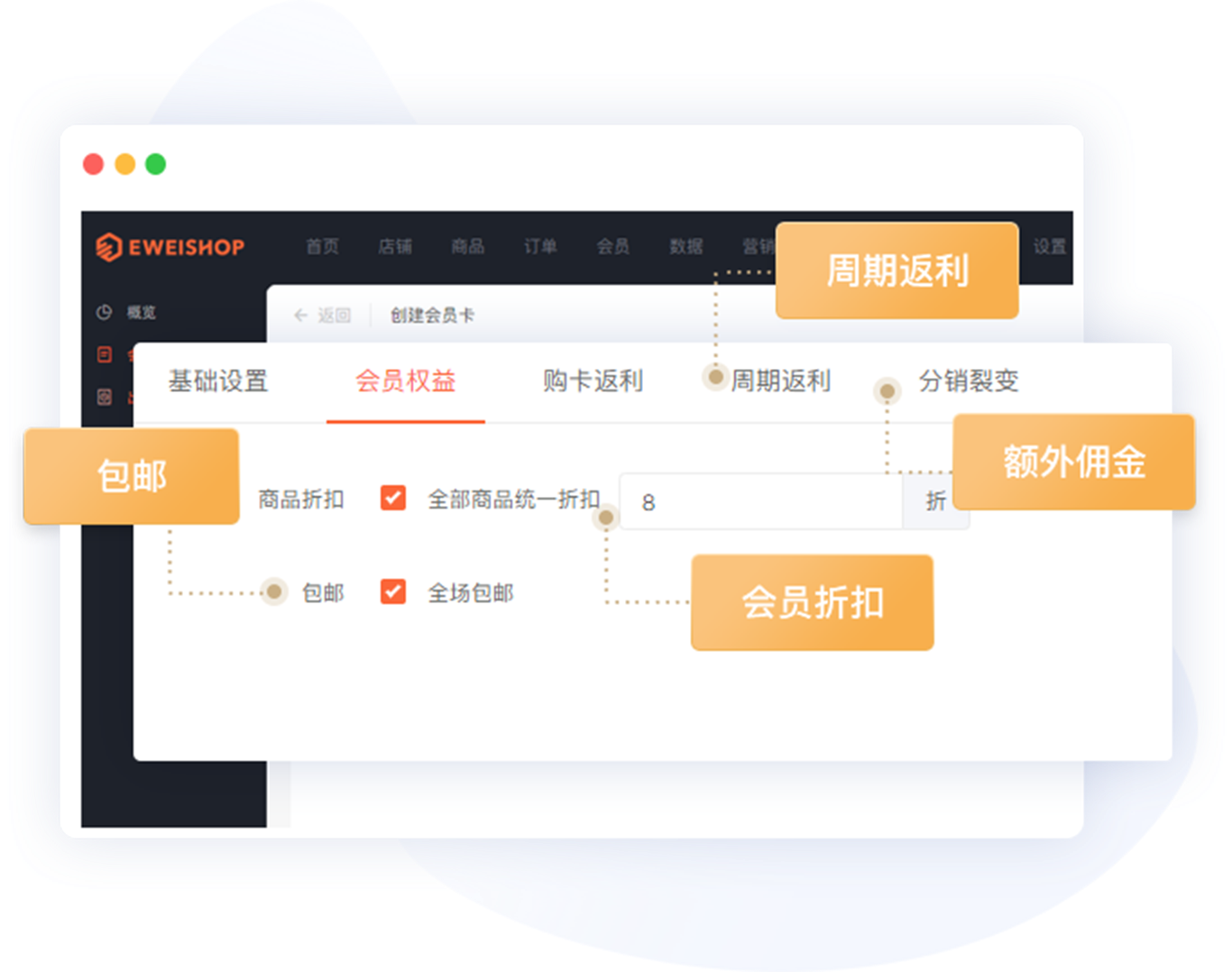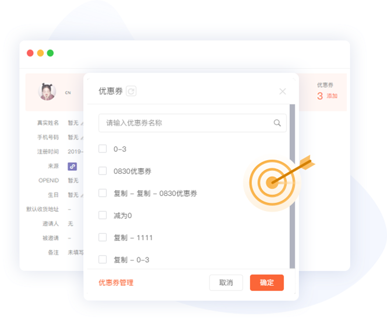 搭建专属会员体系,增强用户粘性,提高复购率,多维度进行用户管理。